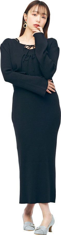 デコルテや足首などの肌見せが引き立ち、メリハリのあるスタイルがさまになっている。