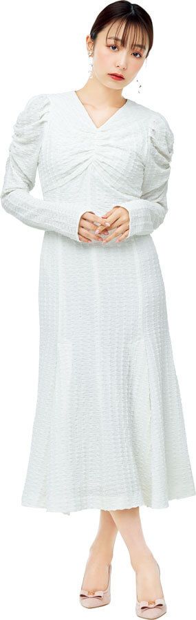 ワンピース¥23,100/CELFORD イヤリング¥2,310/アネモネ(サンポークリエイト) パンプス¥9,900/RANDA