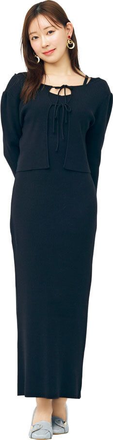 カーディガン付きワンピース¥14,960/PROPORTION BODY DRESSING イヤリング¥4,560/ニータ(ロードス) パンプス¥20,350/ダイアナ(ダイアナ 銀座本店)