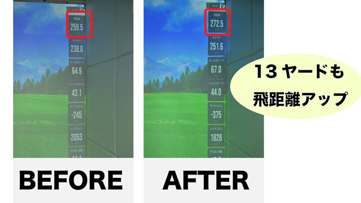 BEFORE:259.5ヤード AFETR:272.5ヤード なんと、13ヤードもアップしました!