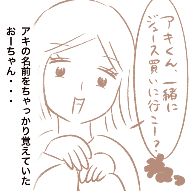 何度断ってもジュースを買ってもらおうとしてまるさん達について来ようとするおーちゃん。あまりのしつこさにまるさんが「行かんってば!」と強めに言うと・・・まるさんに言ってもダメだと思ったのか、なんと今度は「ねぇねぇ。アキくん、一緒にジュース買いに行こー?」とアキくんをそそのかし始め・・・(汗)