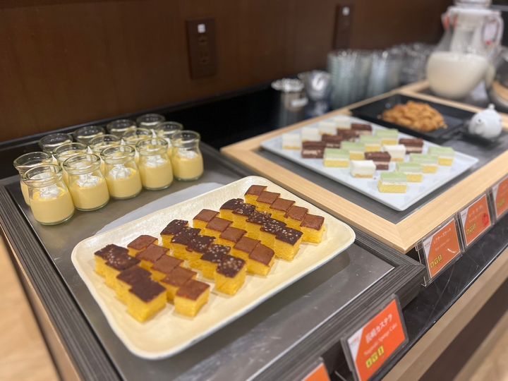 長崎のスイーツといえばやっぱり「カステラ」です。ひと口サイズで子どもも食べやすいサイズ感でした。デザートも、カステラ以外にケーキやプリンなどもありました。また飲みものとして有名な「ミルクセーキ」もありましたよ♪