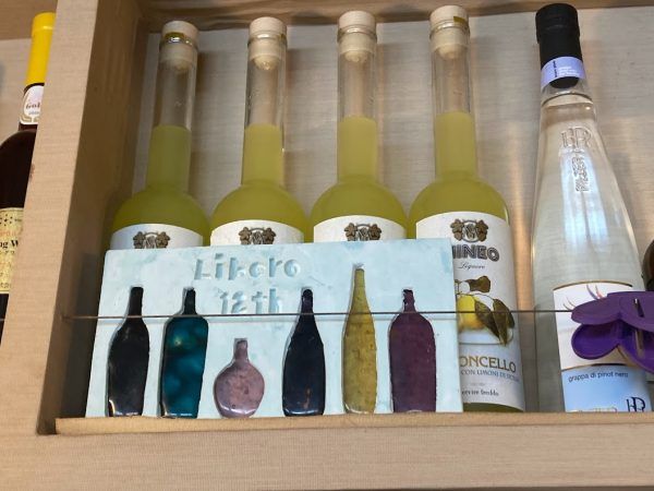ワインの飾り棚にはワインがデザインされた「オステリアリベロ(Libero)」さんのプレートが!現在営業して18年になる「オステリアリベロ(Libero)」さんですが、12周年の際には記念にと知人のガラス作家さんがくださったそうです。とってもオシャレで可愛いですね♡