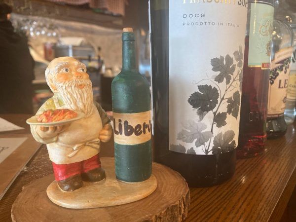「素敵なお店だな〜」と周りをキョロキョロしていると、とても可愛らしい小物があちこちに!スパゲティを持ったおじさんとワインボトルの置物には店名の「Libero」と書かれてて可愛いです。