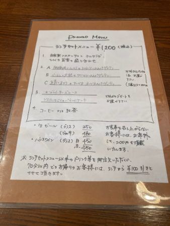 店先にはランチメニューも出ていて今日の料理を見ることができます。