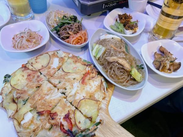 チヂミは海鮮がたっぷり入ってボリューミー!4人でも食べ応え十分です!