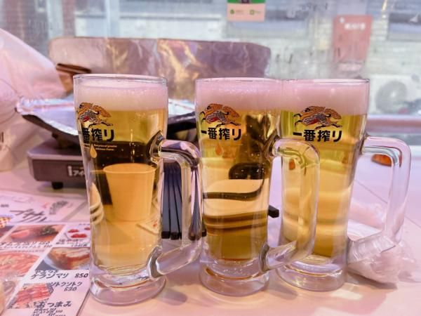 生マッコリも美味しいのでオーダー必須です~!同伴者たち3名ビール好きなので、私だけマッコリを注文。