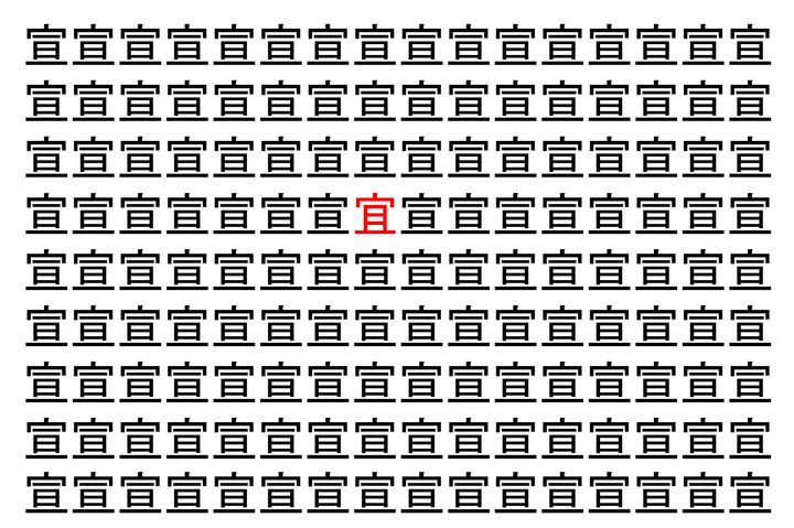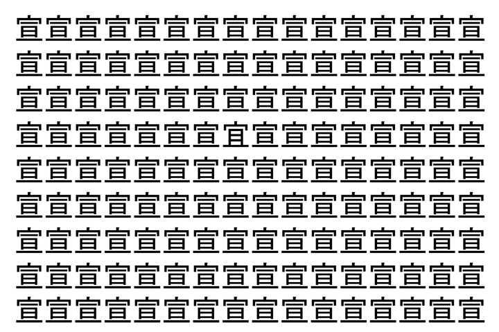 2. 【脳トレ】「宣」の中に紛れて1つ違う文字がある!?あなたは何秒で探し出せるかな??【違う文字を探せ!】