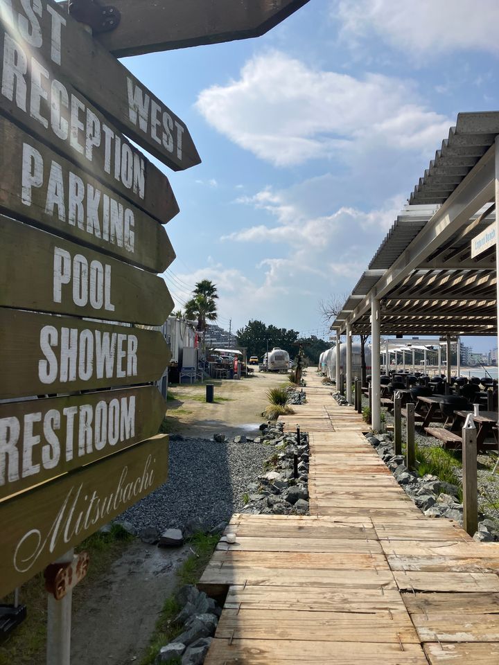 敷地内の駐車場に車を止めて、こんなビーチ感満載のかわいい道を通ってお店へ!