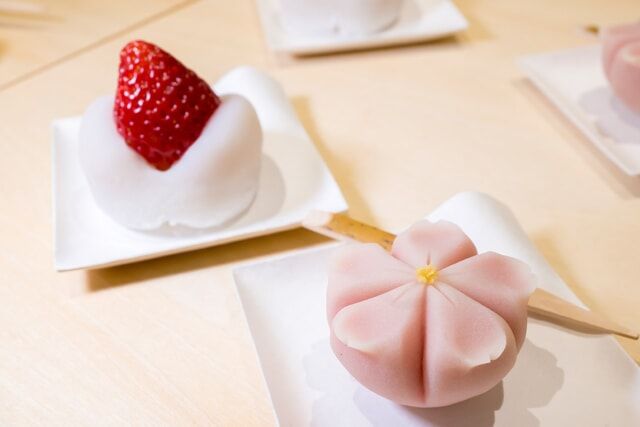 大きな苺ののった「いちご大福」や桜の香りがふわりと感じられる「桜練切」など和菓子も用意。色付けは抹茶や野菜由来の色素を使い、身体にも優しいお茶菓子に仕上げています。どちらも甘すぎず、抹茶の味わいを邪魔しないスイーツです。