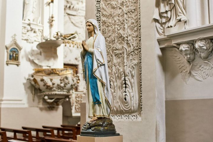 静謐な雰囲気のある、聖ペテロ・パウロ教会の中のマリア像。