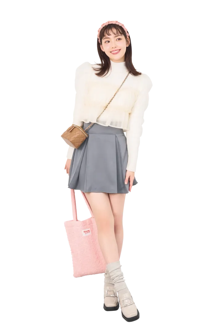 チュールつきトップスは着回し。グレーショートパンツ 4,290円/VANNIE U(アンティローザ)カチューシャ 6,490円/Uiyou ミニバッグ 2,990円/神戸レタス トートバッグ 3,520円/ACCOMMODEルミネエスト新宿店 ソックス 3,500円/Mardi Mercredi(MARDI MERCREDI JAPAN) シューズ 8,500円/オリエンタルトラフィック(ダブルエー)