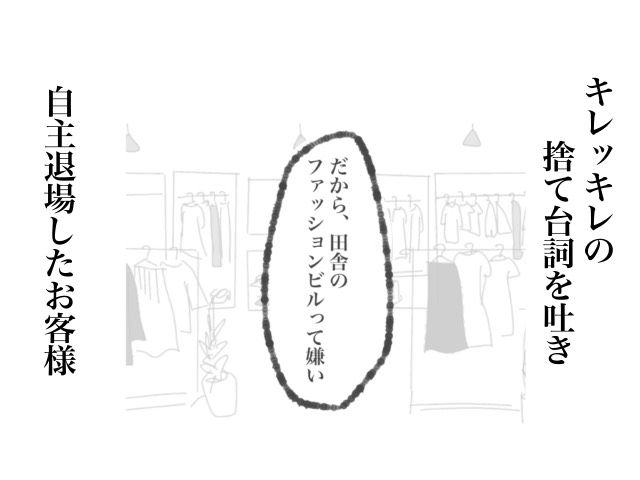 館の責任者M岡さんに駐車券は出せないと言われ、また持ってきた服を置いて帰ることもアツアゲさんのとっさの判断で回避されたギャルママクレーマーは、「だから田舎のファッションビルって嫌い」と言い捨てて帰っていきました。対策を練ると言ったM岡さんでしたが・・・。