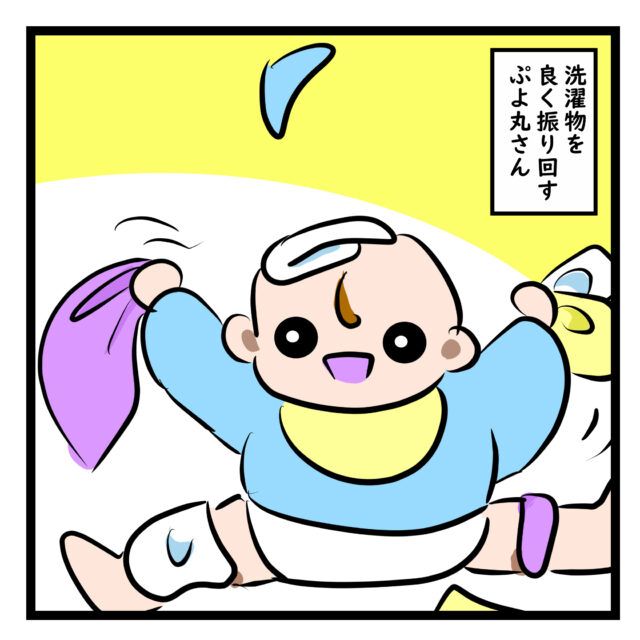 1歳長男ぷよ丸くんのママである天野芽衣子さんから、酷いけれど可愛いぷよ丸くんの行動のお話です。よく洗濯物を振り回して遊ぶというぷよ丸くん。ある日、ぷよ丸くんが振り回していたものを見て天野芽衣子さんは「え!?」・・・。