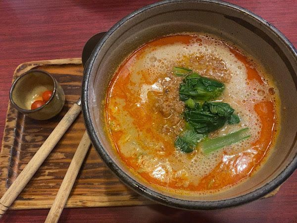 ごま辛口らーめんは、いわゆる担々麺です。ごま香るスープにラー油がピリっとアクセントになり、美味しい!肉味噌もたっぷりのっており、穴あきレンゲで最後まで余すことなくいただくことができます^^