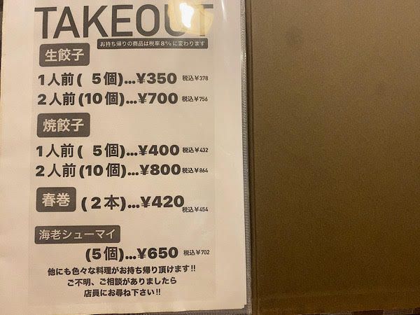 メニューはこちら。