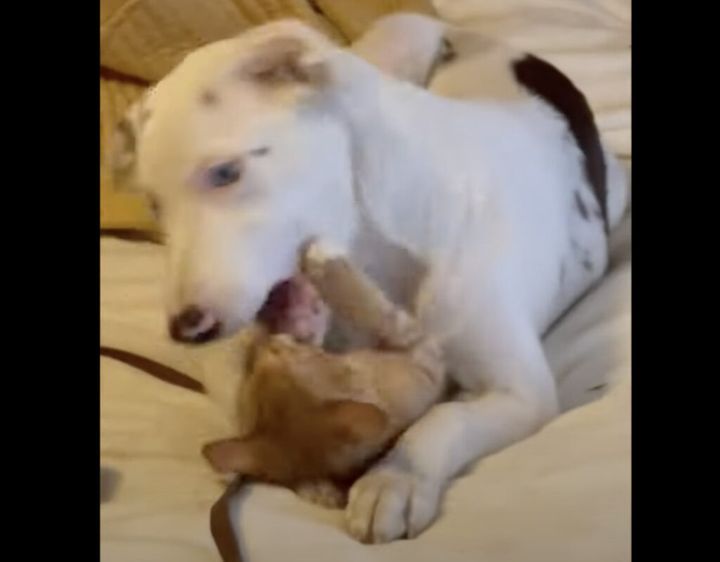 食べちゃうぞ〜♪ 子猫と大型犬、わちゃわちゃして遊ぶ姿が可愛い!
