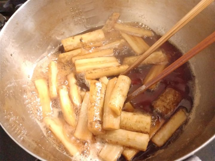 煮る時間は、お好みで調整してください。しっかり味を含ませたい場合は、煮汁に少しとろみが出るまで煮詰めてください。