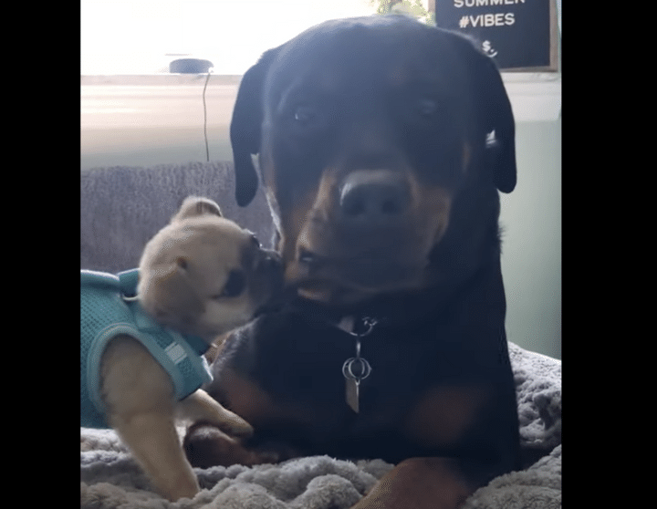 先輩である大型犬のほっぺたに