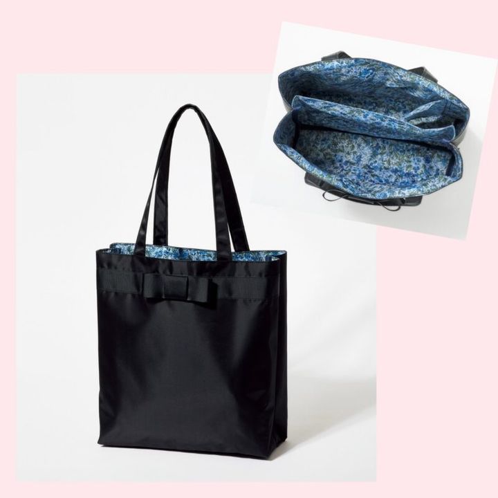 コンパクトなサイズ感&しっかり素材の自立式でバッグの形が崩れずに可愛いシルエットのまま使用できる。中面中央に長財布が入るファスナー付きの仕切りポケットがあり見た目以上に機能的! トートバッグ[高さ18×幅29×マチ13㎝] 各8580円(ローラ アシュレイ/T2O)