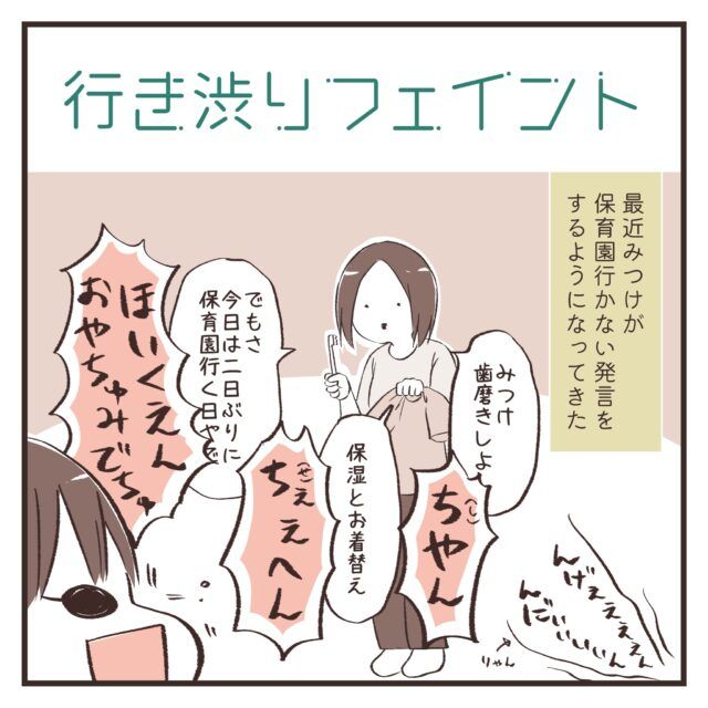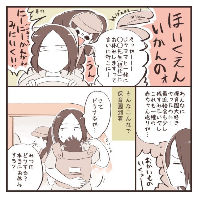 あはは!行かないと見せかけてしっかり登園してますね(笑)どうかこのままフェイントだけで終わりますように・・・!