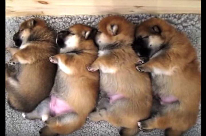 遊びつかれてみんなでお昼寝! 連なって眠る子犬が天使すぎ。