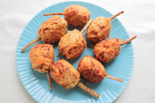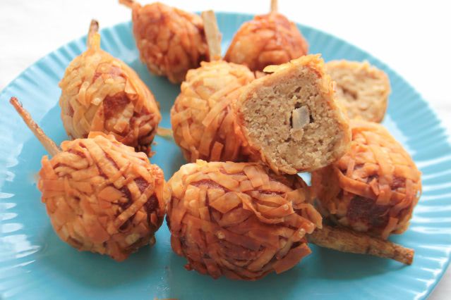 骨付き肉風の形にニンマリ!カレー風味でごぼうの食感がアクセント♪
