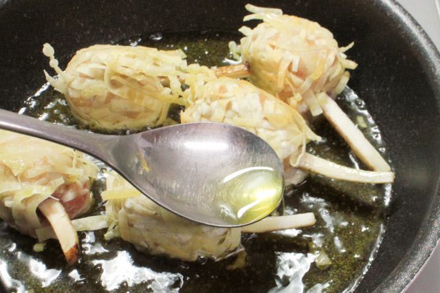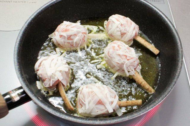 フライパンの底から1cm程度の油で揚げ焼きにします。