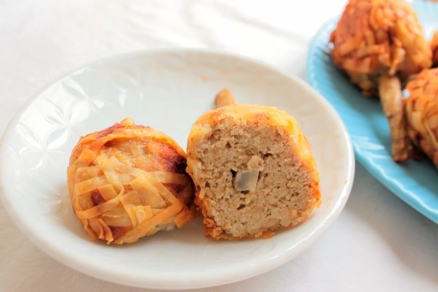 焼売の皮を千切りにしてまぶすことで、皮1枚で包んだ焼売を揚げた時よりもサクサク感が増していたように感じました。