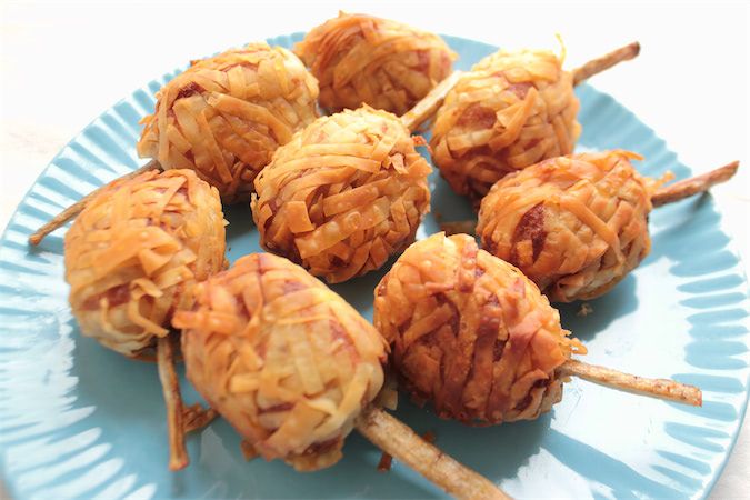 サントリー公式レシピの「春ごぼうのおつまみ焼売」は、ごぼうで骨付き肉を表現した楽しくておいしい揚げ焼売でした。