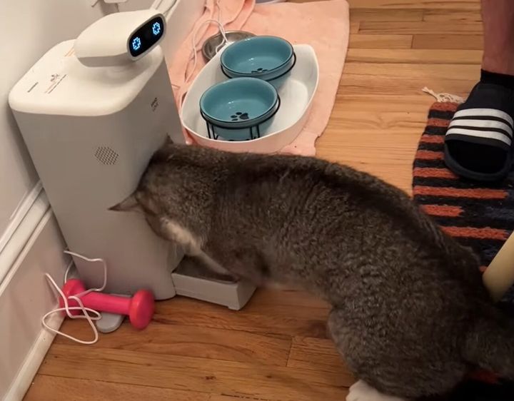 ごはんが早く食べたいニャ!腹ペコ猫が自動給餌器を急かすあまり・・【アメリカ・動画】