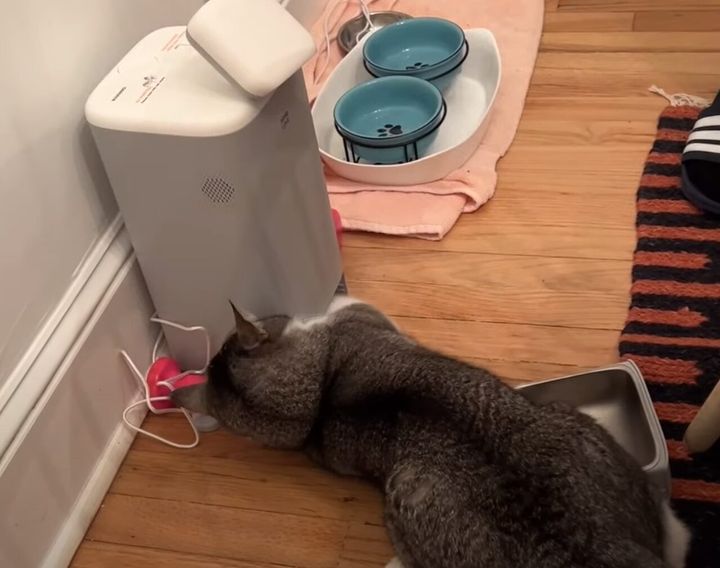 3. ごはんが早く食べたいニャ!腹ペコ猫が自動給餌器を急かすあまり・・【アメリカ・動画】