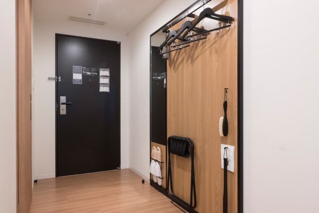 ハンガーや備品は壁に吊るされ、省スペースで機能的になっています。