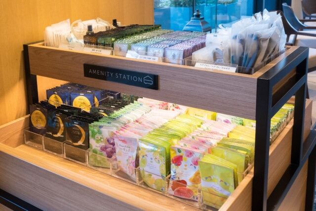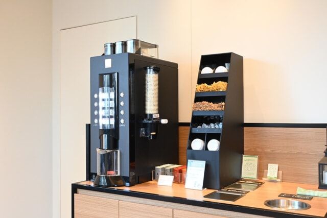 ▲ロビーの一画に用意されたフリードリンクのコーナー