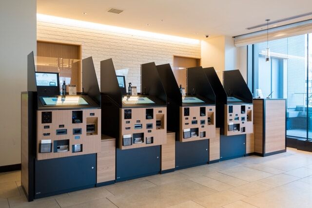 ホテルの宿泊手続きはセルフチェックイン機を使い、非対面で行います。もちろん使い方が判らない場合はスタッフが丁寧に教えてくれます。