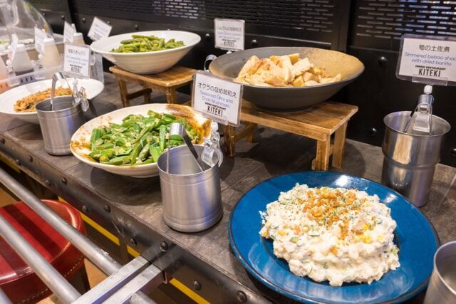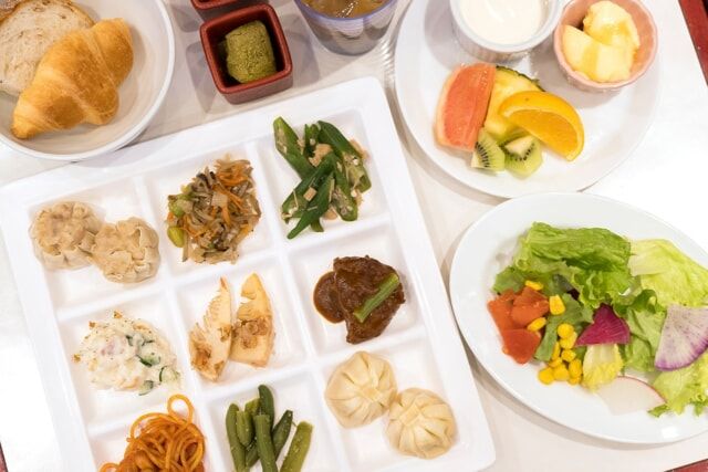 朝食は1階にある「ダイニングレストラン キテキ(DINING RESTAURANT KITEKI)」で、6時30分からビュッフェを用意。横浜発祥のスパゲッティナポリタンをはじめ、名物のシュウマイや手作りのデミグラスソースを使ったハンバーグ、近ごろブランド野菜として人気のある三浦野菜のサラダなどバリエーション豊かな和洋中を用意。お値段も¥1,650(税込)とお手頃です。
