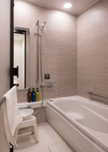 バスルームは全室独立タイプで腰掛付きのバスタブも広く、ゆったり浸かることができました。
