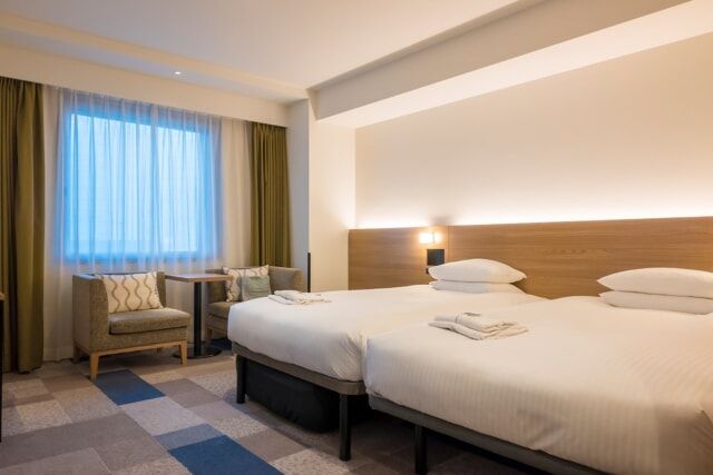 エキストラベッドを使えば最大3名まで利用できる「プレミアムツイン」。未就学児童なら2名まで無料で添い寝が可能です。