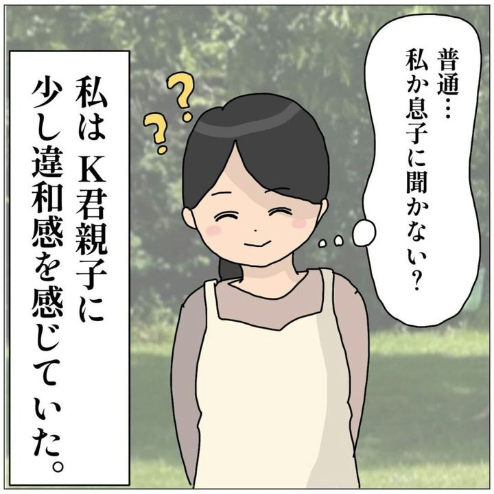 主人公は、そんな自分勝手なKくん親子に違和感を覚え、苦手に感じていました。他人の子どもを親の前で注意するのも気が引けますし、こうした場面でのふるまい方は難しいですよね。