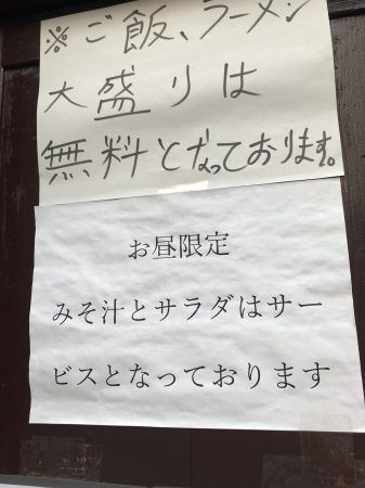 ランチの時間は、味噌汁・サラダのサービスがあります。ご飯・ラーメンも大盛り無料でしてくれます!!嬉しいサービスですね♡