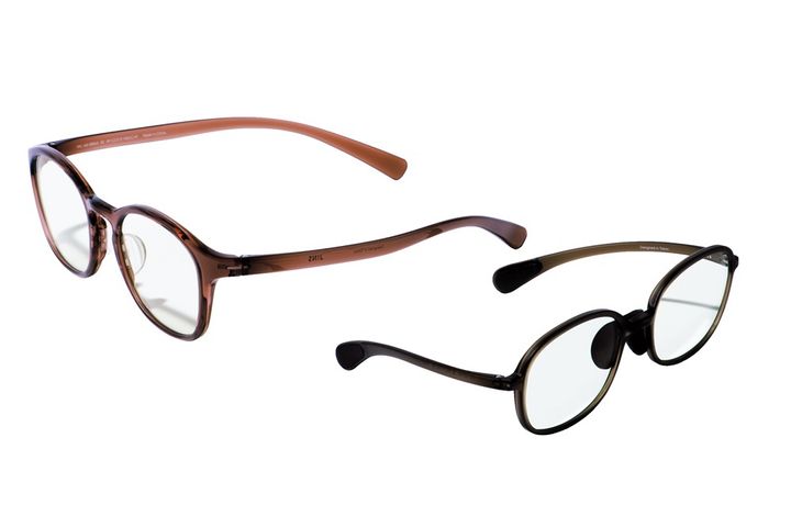 眠る前に長時間スマホを見るのは避けたいけど、どうせ見るなら発想を転換。ブルーライトをカットし、睡眠の環境を整えるようデザインされたストレスフリーな眼鏡をかけて。左は通常版、右は寝転がってもテンプルが邪魔にならないショートテンプルタイプ。各¥6,600※度付きレンズは別価格(JINS)