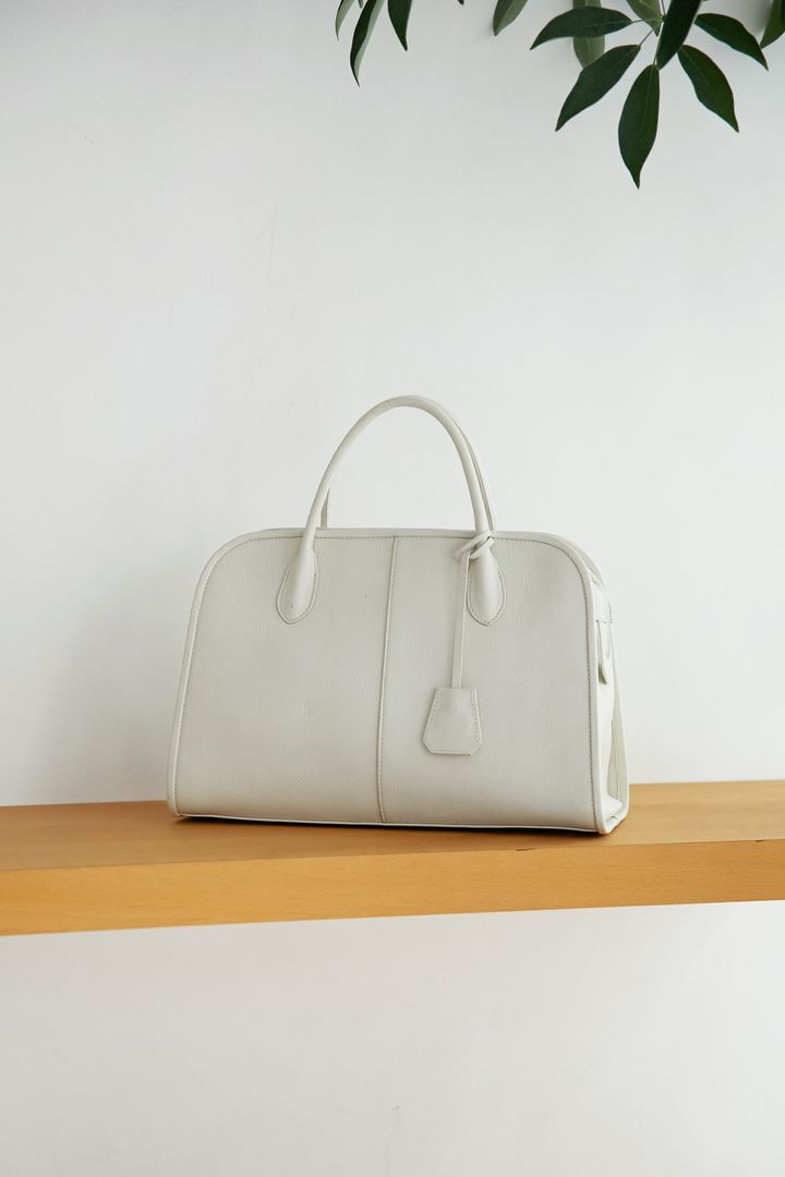 軽く柔らかなレザーを使用し、型崩れしにくいボストンバッグ。外側にはスマホなどを出し入れしやすいポケットもあり実用性も抜群。学校などのきちんとシーンにはもちろん、オフのカジュアルコーデにもなじむON/OFFともに使えるシンプルなデザインが魅力です。