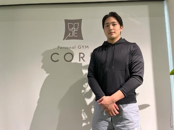 パーソナルジムコア薬院トレーナーの小林海斗さん。好きな種目はデットリフト(背中の種目)♡