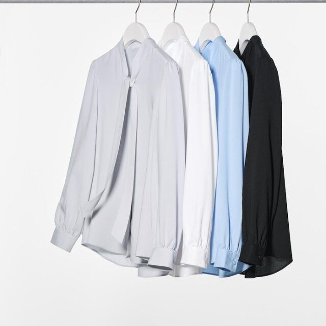 とろみのあるなめらかな肌触りで、着心地快適なボウタイブラウス。リボン結びやそのまま垂らしてもおしゃれに決まり、華やかな印象を醸し出してくれます。洗濯後でもシワになりにくく、お手入れがラクなのも嬉しいポイント。