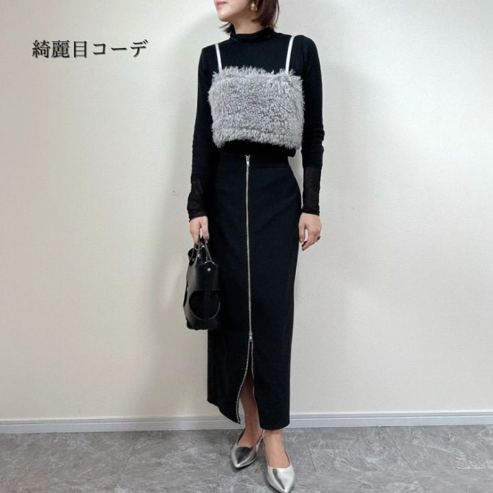 ブラックコーデにビスチェ型のキャミソールを合わせたコーディネート。個性的ですが、足元をシルバーのバックストラップシューズにするだけで、スタイリッシュにまとまっています。ちょっとしたお出かけもエレガントに着こなせる大人におすすめの組み合わせです。