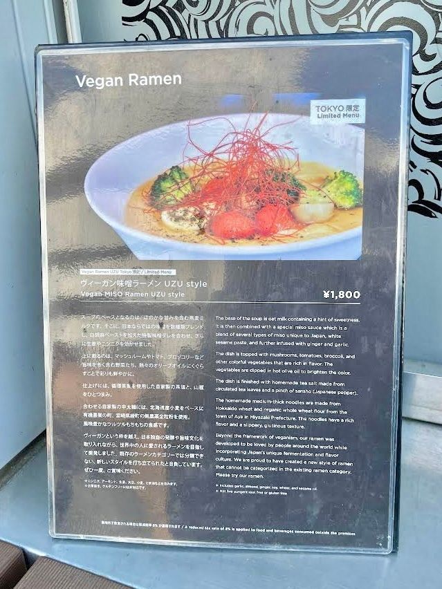 敷地内のヴィーガン専門店Vegan Ramen UZU Tokyoでは、