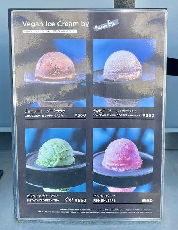 ヴィーガンラーメンヴィーガンアイスクリームなどを