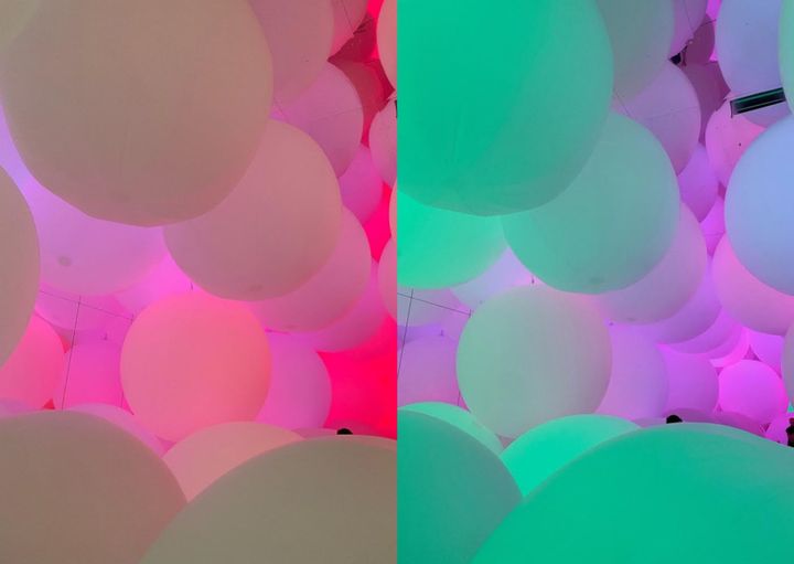 人より大きな光の球体によって埋め尽くされています。