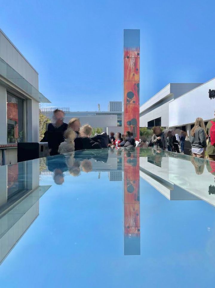 作品空間虚像反転無分別空と火のためのロングテーブルひとつなぎのベンチで食べることもできます。