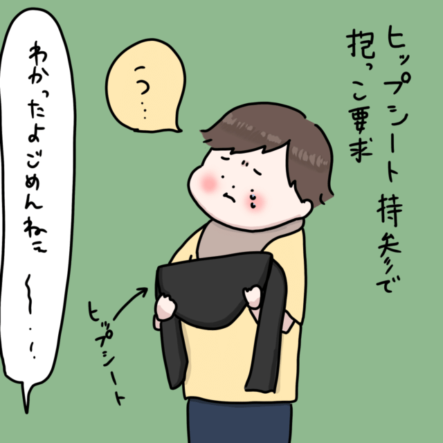 お父さんは普通に抱っこしていたのでお父さんには普通に抱っこを要求して、私にはちゃんとヒップシート持ってきて抱っこ要求してきて